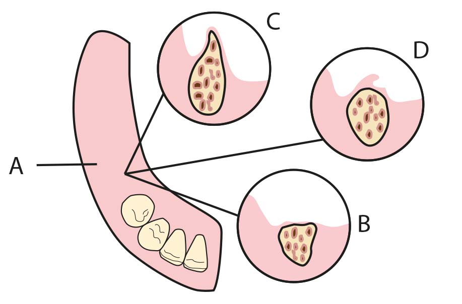 Supporting tissue areas in the maxilla (Figure 1-25):